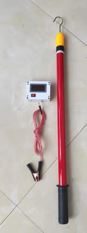 ZGD-1500V 直流数显验电器使用说明书 一、数显验电器概述: 数显验电器是开云手机登录入口采用*元器件,独立研制的新产品,性能可靠。所有参数为开云手机登录入口企业标准。 数显验电器,其指示器与操作杆都应用交流验电器的结构与工艺,所不同之处在于验电器操作杆上增设了数显电压表及接地引下插孔,用于连接接地线,接地端没有正负极之分。 二、参数: 额定电压: ± 1.5KV 声光启动电压 : ± 150-600V 适用电压: ± 0-2KV 操作杆耐压: 10KV/1min。 三、数显验电器使用环境条件: 验电器环境温度:-25℃~+55℃ 验电器使用场合:户内和户外无阴雨天气,相对湿度小于80%。 四、数显验电器使用方法及注意事项: 1. 为保证人身和设备的安全,确保验电器的完好性,验电器应存放在空气流通、环境干燥的场所。 2. 验电操作前应对验电器进行自检,方法是:1):检查各部分引线,插头,接地夹是否完好。2)打开电源开关数显表应该很快归零。若有问题不得进行验电操作。 3. 验电操作顺序为: (1)拉伸所有绝缘操作杆,使其拉足并定位。将数显表卡在绝缘杆第五节底部标志线位置。 (2)将测试线上端的插头可靠地插进首节杆末端的插孔内,另一端插到数显表上部测试插孔内。 (3)将接地引下线的插头插到数显表下部插孔内,另一端可靠地夹在良好的接地轨或极上。 (4)操作人员应先将该验电器在有电部位上验电,证明该验电器性能完好,然后在施工部位上验电,确认施工部位是否带电。 4.数显验电器具备一定安全保护,数显表内电流为微安级,但是高压操作必须严格按照说明书要求执行,验电时不得接触带电部位。 5.验电器应存放于干燥环境,当电压显示不正常时应首先考虑更换电池(7号碱性电池三节)。正常不用应半年换一次电池,以防电池漏夜损坏验电器。 备注:若显示电压与实际电压误差较大,请打开仪表后盖,掀开表头盖板,用小型螺丝刀调整蓝色微调电位器。 |